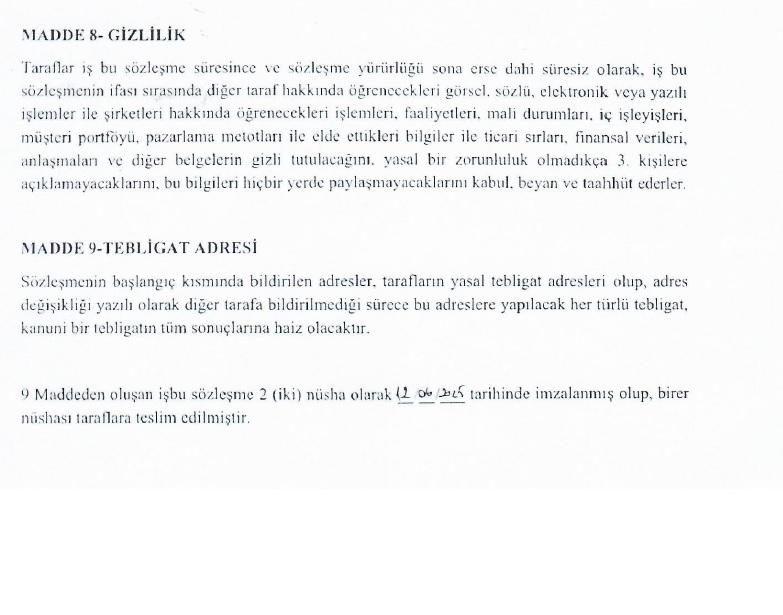 İşbu sözleşmenin dışında uygulanacak indirimler aşağıda belirtilmiştir.