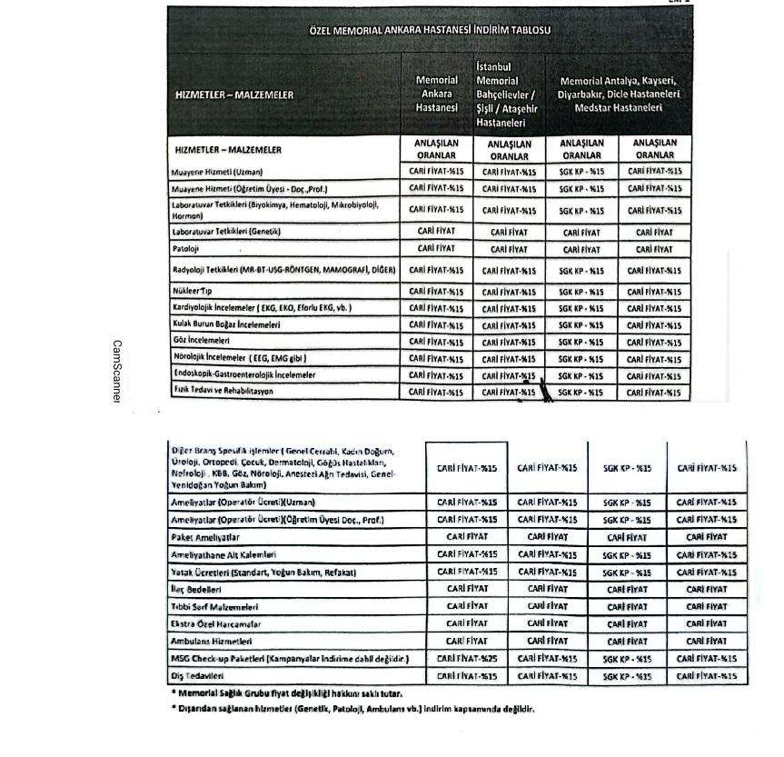 İşbu taahhütname aşağıda belirtilen hüküm ve şartlarda geçerli olup, aşağıda sıralanmış olan Hastaneler için tanzim ve imza edilmiş olup, Memorial Sağlık Grubu bünyesinde yer alan diğer hastane ve tıp merkezleri için geçerli değildir.